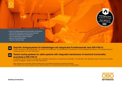 Tested routing systems for cable systems with integrated maintenance of electrical functionality according to DIN 4102-12
