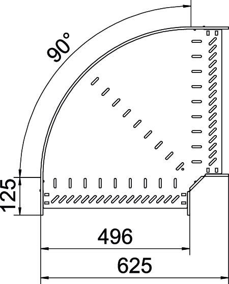Prekės aprašymas90° bend made from CO2-reduced steel, for the creation of a horizontal branch. Fitting for latchable and screwable cable trays, side height 60 mm. Screwless mounting with double clamps or screw connection with FRS truss-head screws and M6 combination nuts. Can be used in indoor areas. Fastening material must be ordered separately.
