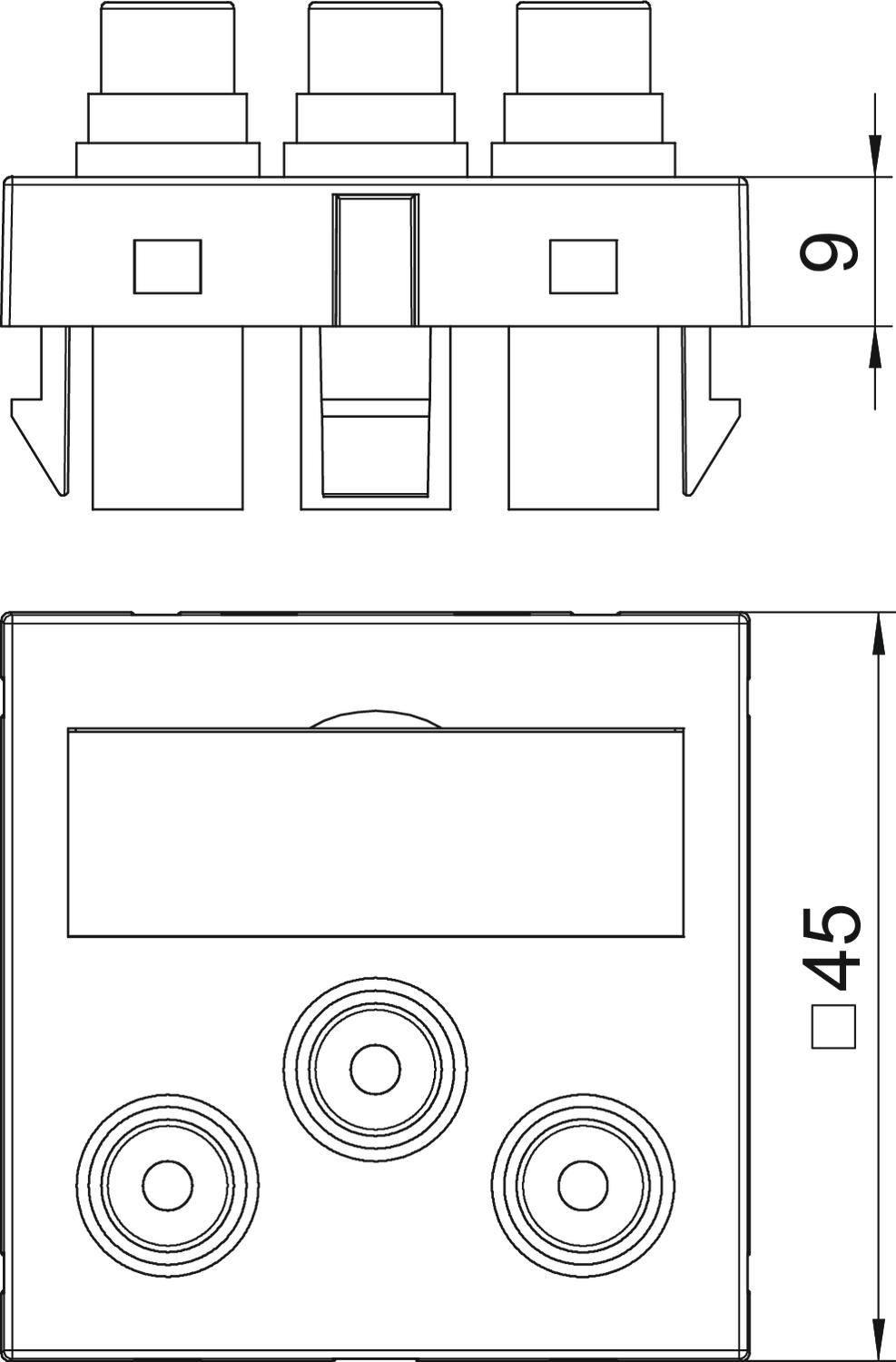 Prekės aprašymasAudio/Video lizdas su trimis garso / vaizdo technikos jungtimis, tiesus išvadas, užrašo laukelis, trys „jungtis-jungtis“ modelio jungtys (RCA), spalvinis kodas: geltona / raudona / balta. Laikiklis su fiksavimo įtaisu, skirtu horizontaliai ir vertikaliai prietaisų instaliacijai sistemos aplinkoje.