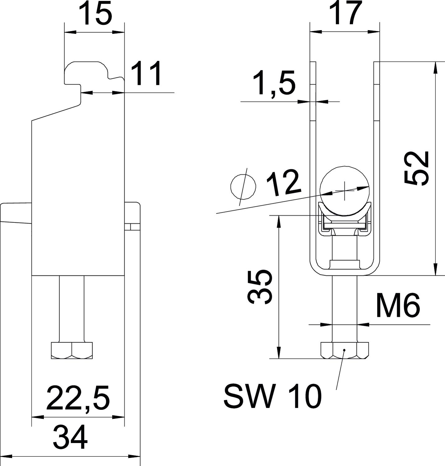 Aukštis 52 mm Be halogenų taip CO2₂ pėdsakas (GWP) nuo lopšio iki vartų 0,1329 kg CO2e / 1 Vienetas Dydis 08-12mm Ilgis 22,5 mm Išorės ilgio matmuo 34 mm Kabelių / vamzdžių skaičius 2 Maks. įtempimo zona D 12 mm Maks. Sukimo momentas 3 Nm Matmuo A 22,5 mm Matmuo B 17 mm Matmuo C 34 mm Matmuo G (mm) M6 Matmuo H 52 mm Matmuo L 47 mm Matmuo t 1,5 mm Medžiaga Plienas Min. įtempimo zona D 8 mm Montavimo būdas Profiliniai bėgeliai Papildoma medžiaga Plienas Papildomas paviršius karštai cinkuotas Paviršius karštai cinkuotas Plotis 17 mm plyšiui 10 mm Skardos storis 1,5 mm skirta bėgeliui, kurio maks. įpjovos plotis (su intervalu) 12 mm skirta bėgeliui, kurio min. įpjovos plotis (su intervalu) 11 mm skirta maks. vamzdžio skersmeniui 12 mm skirta min. vamzdžio skersmeniui 8 mm Sriegis M6 Su plastikine vonele taip Su skaitikliu ne Tvirtinimo plokštelės medžiaga Plastikas Tvirtinimo plokštelės medžiagos kokybė Polipropilenas - Visi tipai