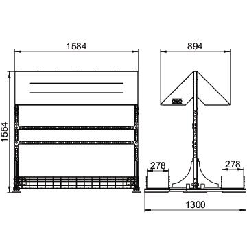Prekės aprašymasInverter frame for the protected installation of several inverters for PV systems on flat roofs. Free-standing. Loading on both sides possible. 2 mesh cable trays included for ballasting and for the routing of cables.