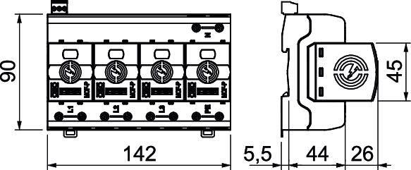 • žaibo srovės iškrovos dydis 50 kA (10/350) vienam poliui ir iki 150 kA (10/350) iš viso
