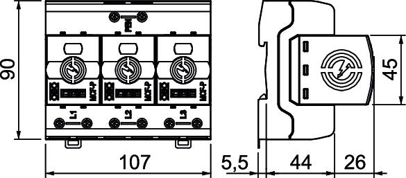 • žaibo srovės iškrovos dydis 50 kA (10/350) vienam poliui ir iki 150 kA (10/350) iš viso