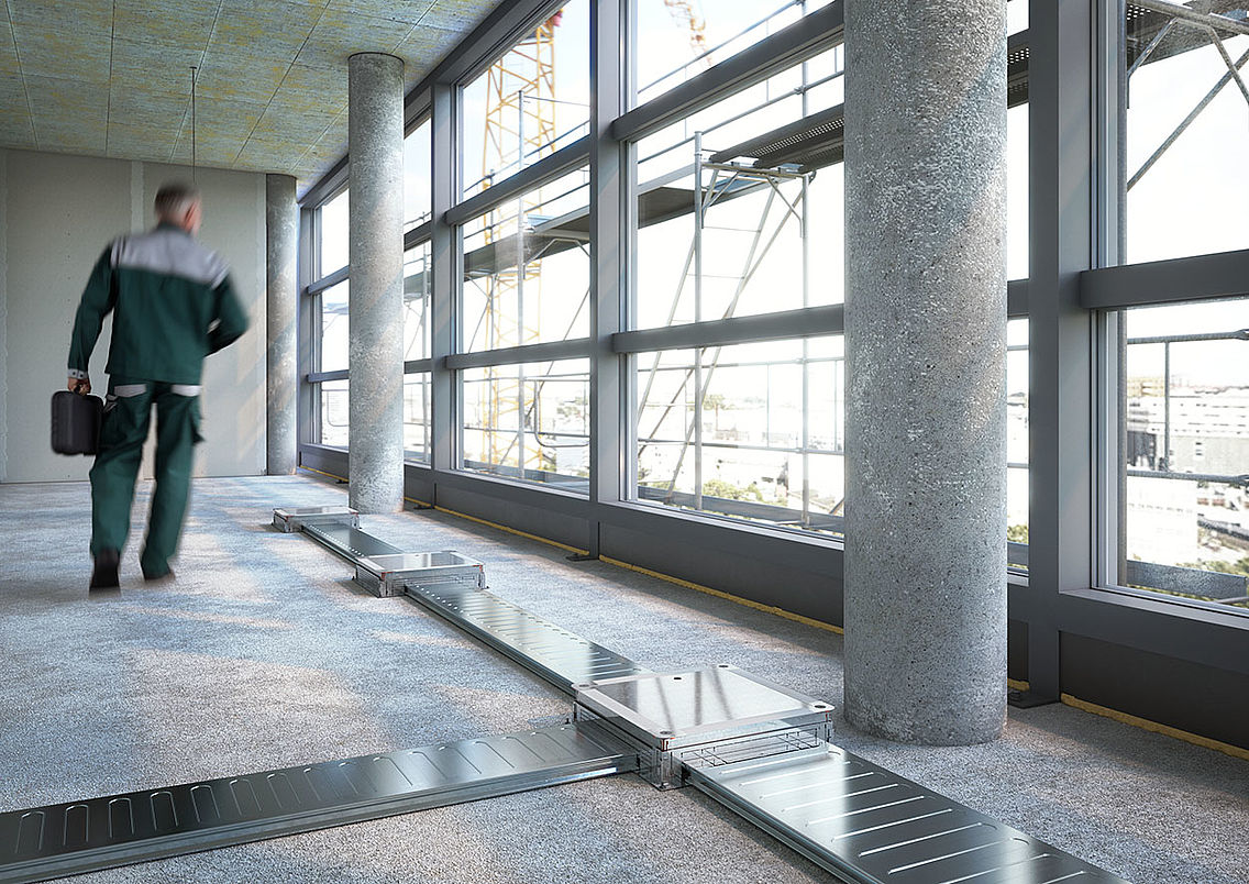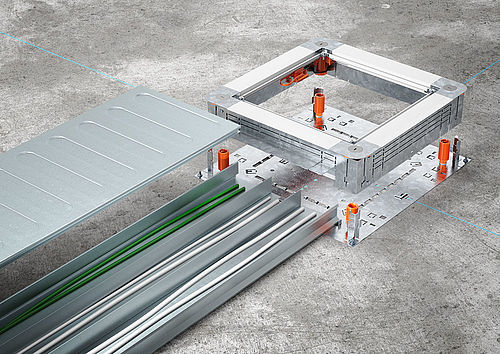 Šios patikimos sistemos nauda pastebima statybų etape. Ji sandariai uždaryta visą montavimo laiką. Montažinės grindų dėžės apsaugotos apsauginiu montavimo dangteliu. Taigi, į sistemą nepatenka pašalinių daiktų ir vidus lieka švarus. Standartiškai montažinės grindų dėžės gali būti montuojamos plačiame aukščio reguliavimo diapazone, kai išlyginamasis grindų sluoksnis siekia nuo 80 mm iki 160 mm. Kitas privalumas: montažines grindų dėžes galima atsieti, kad jos plaukiotų išlyginamajame grindų sluoksnyje. Taip atsiejus galima išvengti grindų dangos ir išlyginamojo grindų sluoksnio įtrūkimų.