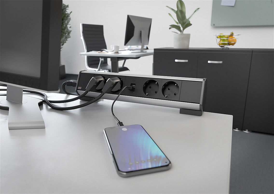 OBO stalines dėžutes galima tiesiogiai prisijungti prie elektros srovės, duomenų ir multimedijos jungčių darbo vietoje. Jos patraukia dėmesį savo subtiliu ir elegantišku dizainu. Mūsų tuščio korpuso variantas taip pat gali būti lengvai komplektuojamas individualiai. Šiuos stalinius sprendimus, kaip ir mūsų kabelines ir pogrindines sistemas, galima nesunkiai išplėsti visapusiškomis juodos spalvos „OBO Modul 45®“ kištukinėmis sistemomis.