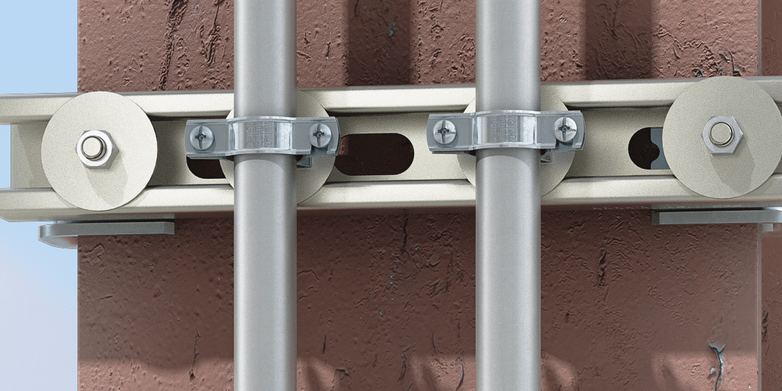 Be to, kad galite montuoti tiesiogiai prie sienos, apkabas galite tvirtinti ir prie konstrukcinių elementų, pavyzdžiui, su poveržlėmis ant profiliuotų bėgelių arba kabelinių trasų.