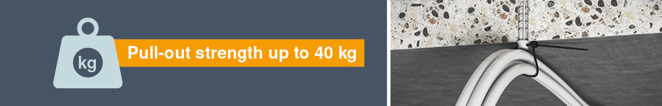 „Delta-Push“ stebina didelėmis ištraukimo jėgomis iki 40 kg. Į šią vertę neįeina saugos koeficientas. Bet kas tiksliai yra ištraukimo jėga? Ištraukimo jėga rodo didžiausią jėgą, kuriai esant komponentas sugenda dėl lūžimo veikiant ašinei apkrovai arba jėga ištraukiamas iš išgręžtos kiaurymės.