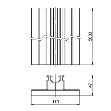 Aukštis 47 mm Dydis 5000x110x47 Ilgis 5000 mm Įmontuotas kabelių kanalas ne Kabelių kanalas, papildoma pasirinktis ne Medžiaga Aliuminis Paviršius blizgus Plotis 110 mm Varžos momentas Wx 3210 mm³ Varžos momentas Wy 3840 mm³ - Visi tipai
