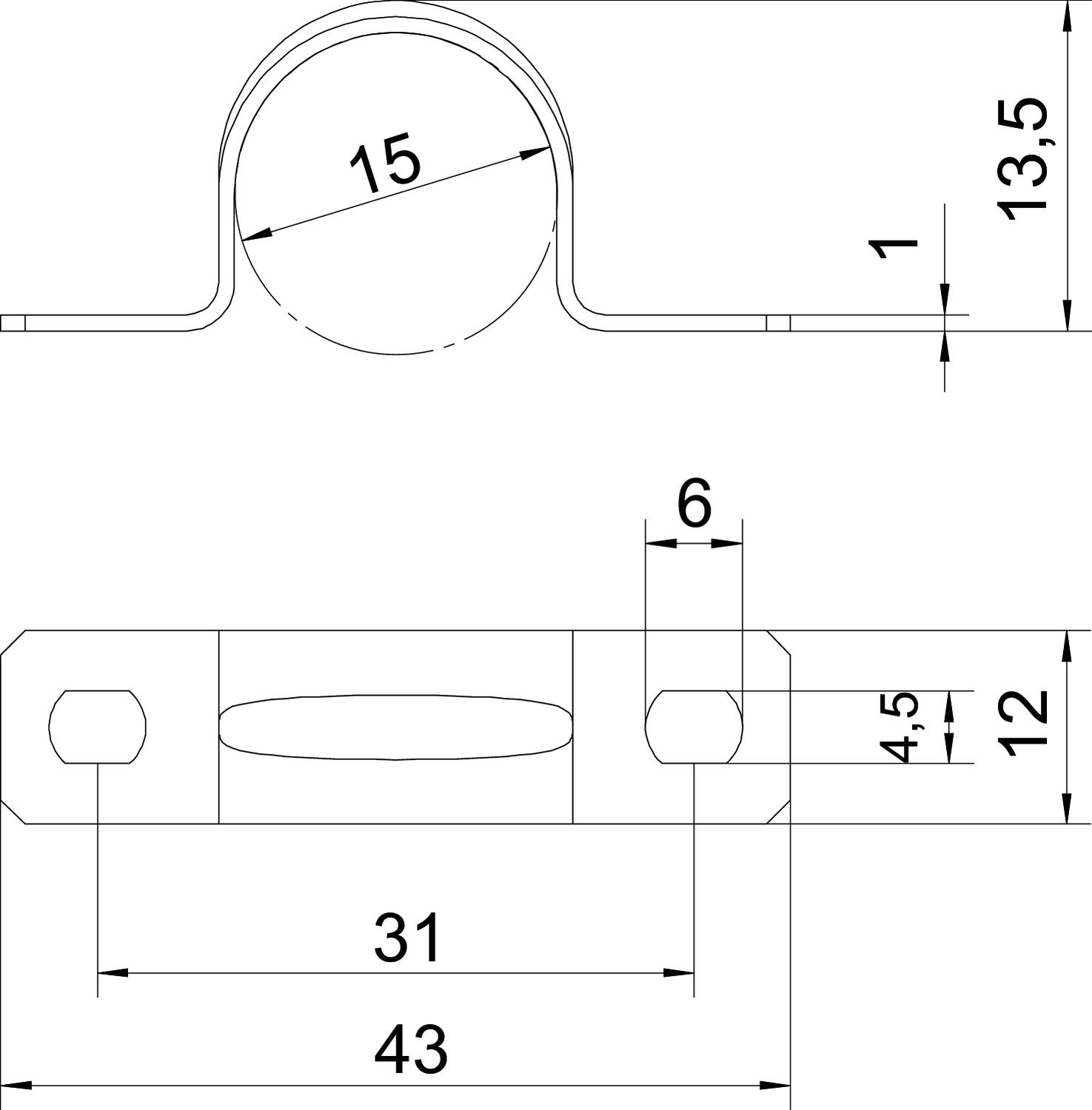Atsparus ultravioletiniams spinduliams taip Atstumas iki sienos ne Aukštis 13,5 mm Be halogenų taip CO2₂ pėdsakas (GWP) nuo lopšio iki vartų 0,0123 kg CO2e / 1 Vienetas Dydis 15mm Ilgis 43 mm Išvadas dvimentis Kabelių / vamzdžių skaičius 1 Matmuo A 43 mm Matmuo B 31 mm Matmuo b 12 mm Matmuo d 4,5 mm Matmuo D 15 mm Matmuo e 6 mm Matmuo H 13,5 mm Matmuo t 1 mm Medžiaga Plienas Medžiagos storis 1 mm Paviršius galvaniškai cinkuotas Plastikinis apvalkalas ne Plotis 12 mm skirta skersmeniui 15 Skylės dydis 4,5 x 6 mm Tinka priešgaisrinėje zonoje ne Tvirtinimo būdas Skylė varžtui Vardinis skersmuo 15 mm - Visi tipai