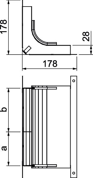 a dalies skerspjūvis 2701 mm² Aukštis 28 mm b dalies skerspjūvis 3483 mm² CO2₂ pėdsakas (GWP) nuo lopšio iki vartų 3,4507 kg CO2e / 1 Vienetas Dydis 330x177,7x177,7 Ilgis 178 mm Įtvirtintų skiriamųjų sienelių skaičius 1 Matmuo a 110 mm Matmuo b 140 mm Matmuo h 28 mm Medžiaga Plienas Min. kanalo aukštis 28 mm Min. kanalo plotis 250 mm Paviršius cinkuotas juostiniu būdu Plotis 250 mm Sekcijų skaičius 2 St. Tinka pogrindiniam kanalui su dekoratyvine danga taip Tinka užbetonuojamam uždaram pogrindiniam kanalui ne - Visi tipai