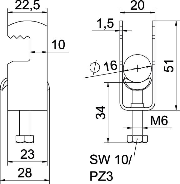 Prekės aprašymasApkaba, F formos kojelė, su metaline prispaudimo plokštele, užapvalintais kraštais kabeliui apsaugoti. Vertikaliam ir horizontaliam 1 atskiro kabelio prie plokščiojo plieno montavimui. Su vienaeigiu varžtu prie pirspaudimo plokštelės, universali šešiakampė varžto galvutė SW10, su grioveliu ir kryžminiu grioveliu. Tinka montuoti viduje ir lauke. Rekomenduojame naudoti kontraplokštelę.