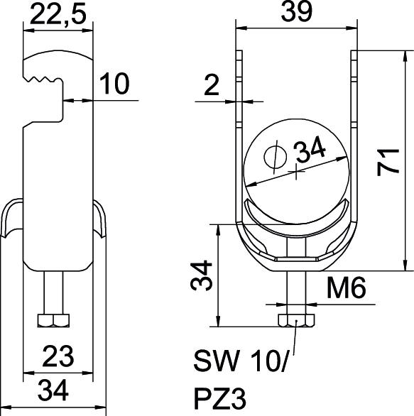 Aukštis 71 mm Be halogenų taip CO2₂ pėdsakas (GWP) nuo lopšio iki vartų 0,1759 kg CO2e / 1 Vienetas Dydis 28-34mm Ilgis 22,5 mm Išorės ilgio matmuo 34 mm Kabelių / vamzdžių skaičius 1 Maks. įtempimo zona D 34 mm Maks. Sukimo momentas 3 Nm Matmuo A 22,5 mm Matmuo B 39 mm Matmuo C 34 mm Matmuo G (mm) M6 Matmuo H 71 mm Matmuo L 34 mm Matmuo t 2 mm Medžiaga Plienas Min. įtempimo zona D 28 mm Montavimo būdas plokščias profilis Papildoma medžiaga Plienas Papildomas paviršius karštai cinkuotas Paviršius karštai cinkuotas Plotis 39 mm plyšiui 10 mm Skardos storis 2 mm skirta maks. vamzdžio skersmeniui 34 mm skirta min. vamzdžio skersmeniui 28 mm Sriegis M6 Su metaline vonele taip Su skaitikliu ne Tvirtinimo plokštelės medžiaga Plienas - Visi tipai