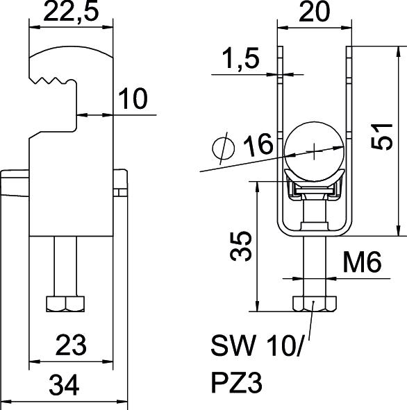 Prekės aprašymasApkaba, F formos kojelė, su plastikine prispaudimo plokštele iš polipropileno. Vertikaliam ir horizontaliam 1 atskiro kabelio prie plokščiojo plieno montavimui. Su vienaeigiu varžtu prie pirspaudimo plokštelės, universali šešiakampė varžto galvutė SW10, su grioveliu ir kryžminiu grioveliu. Tinka montuoti viduje ir lauke. Rekomenduojame naudoti kontraplokštelę.