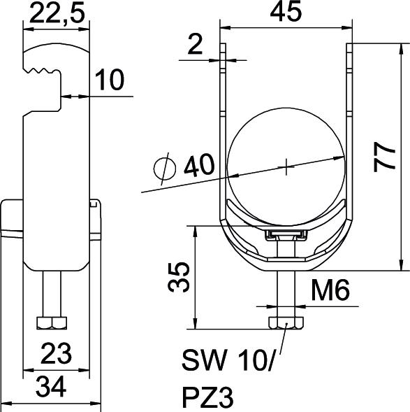 Aukštis 77 mm Be halogenų taip CO2₂ pėdsakas (GWP) nuo lopšio iki vartų 0,162 kg CO2e / 1 Vienetas Dydis 34-40mm Ilgis 22,5 mm Išorės ilgio matmuo 34 mm Kabelių / vamzdžių skaičius 1 Maks. įtempimo zona D 40 mm Maks. Sukimo momentas 3 Nm Matmuo A 22,5 mm Matmuo B 45 mm Matmuo C 34 mm Matmuo G (mm) M6 Matmuo H 77 mm Matmuo L 35 mm Matmuo t 2 mm Medžiaga Plienas Min. įtempimo zona D 34 mm Montavimo būdas plokščias profilis Papildoma medžiaga Plienas Papildomas paviršius karštai cinkuotas Paviršius karštai cinkuotas Plotis 45 mm plyšiui 10 mm Skardos storis 2 mm skirta maks. vamzdžio skersmeniui 40 mm skirta min. vamzdžio skersmeniui 34 mm Sriegis M6 Su plastikine vonele taip Su skaitikliu ne Tvirtinimo plokštelės medžiaga Plastikas Tvirtinimo plokštelės medžiagos kokybė Polipropilenas - Visi tipai