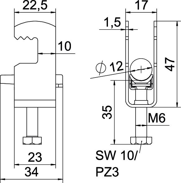 Aukštis 47 mm Be halogenų taip CO2₂ pėdsakas (GWP) nuo lopšio iki vartų 0,083 kg CO2e / 1 Vienetas Dydis 08-12mm Ilgis 22,5 mm Išorės ilgio matmuo 34 mm Kabelių / vamzdžių skaičius 1 Maks. įtempimo zona D 12 mm Maks. Sukimo momentas 3 Nm Matmuo A 22,5 mm Matmuo B 17 mm Matmuo C 34 mm Matmuo G (mm) M6 Matmuo H 47 mm Matmuo L 35 mm Matmuo t 1,5 mm Medžiaga Plienas Min. įtempimo zona D 8 mm Montavimo būdas plokščias profilis Papildoma medžiaga Plienas Papildomas paviršius karštai cinkuotas Paviršius karštai cinkuotas Plotis 17 mm plyšiui 10 mm Skardos storis 1,5 mm skirta maks. vamzdžio skersmeniui 12 mm skirta min. vamzdžio skersmeniui 8 mm Sriegis M6 Su plastikine vonele taip Su skaitikliu ne Tvirtinimo plokštelės medžiaga Plastikas Tvirtinimo plokštelės medžiagos kokybė Polipropilenas - Visi tipai