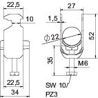 Prekės aprašymasApkaba, plaktuko galvutės formos kojelė, su plastikine prispaudimo plokštele iš polipropileno. Vertikaliam ir horizontaliam 1 vieno kabelio montavimui ant C profilio bėgelio. Kai įpjovos plotis 16 - 17 mm. Su vienaeigiu varžtu prie pirspaudimo plokštelės, universali šešiakampė varžto galvutė SW10, su grioveliu ir kryžminiu grioveliu. Tinka montuoti viduje ir lauke. Rekomenduojame naudoti kontraplokštelę.