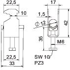 Prekės aprašymasApkaba, plaktuko galvutės formos kojelė, su plastikine prispaudimo plokštele iš polipropileno. Vertikaliam ir horizontaliam 1 vieno kabelio montavimui ant C profilio bėgelio. Kai įpjovos plotis 16 - 17 mm. Su vienaeigiu varžtu prie pirspaudimo plokštelės, universali šešiakampė varžto galvutė SW10, su grioveliu ir kryžminiu grioveliu. Tinka montuoti viduje ir lauke. Rekomenduojame naudoti kontraplokštelę.