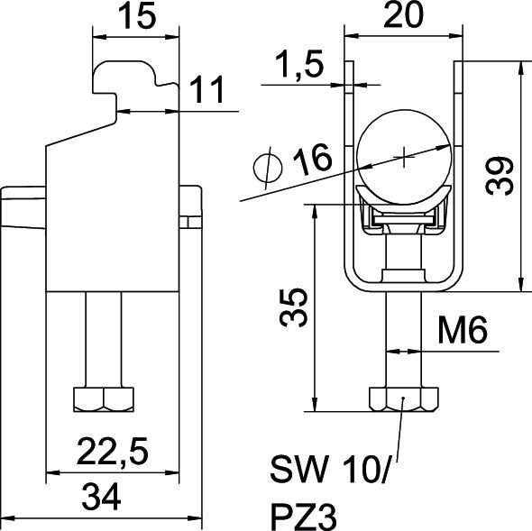 Prekės aprašymasApkaba, N formos kojelė, su plastikine prispaudimo plokštele iš polipropileno. Vertikaliam ir horizontaliam 1 vieno kabelio montavimui ant C profilio bėgelio. Skirta 11 - 12 mm tarpo pločiui. Su vienaeigiu varžtu prie pirspaudimo plokštelės, universali šešiakampė varžto galvutė SW10, su grioveliu ir kryžminiu grioveliu. Tinka montuoti viduje ir lauke. Rekomenduojame naudoti kontraplokštelę.