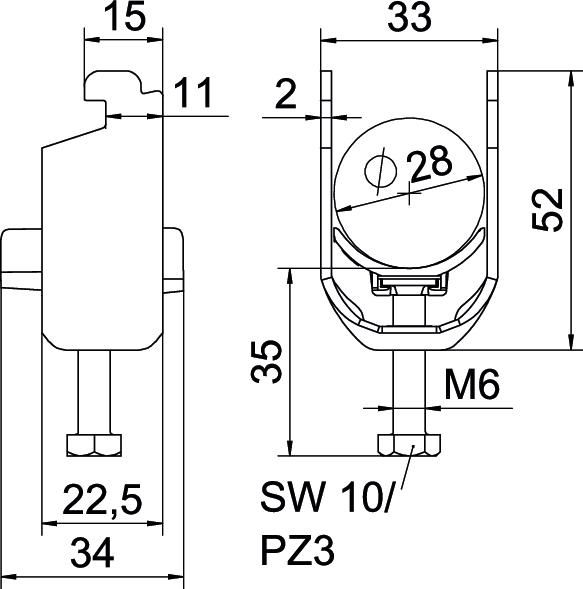 Prekės aprašymasApkaba, N formos kojelė, su plastikine prispaudimo plokštele iš polipropileno. Vertikaliam ir horizontaliam 1 vieno kabelio montavimui ant C profilio bėgelio. Skirta 11 - 12 mm tarpo pločiui. Su vienaeigiu varžtu prie pirspaudimo plokštelės, universali šešiakampė varžto galvutė SW10, su grioveliu ir kryžminiu grioveliu. Tinka montuoti viduje ir lauke. Rekomenduojame naudoti kontraplokštelę.
