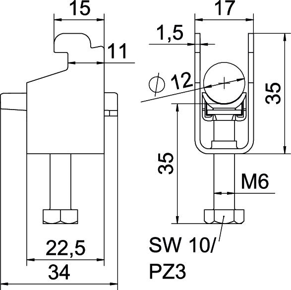 Prekės aprašymasApkaba, N formos kojelė, su plastikine prispaudimo plokštele iš polipropileno. Vertikaliam ir horizontaliam 1 vieno kabelio montavimui ant C profilio bėgelio. Skirta 11 - 12 mm tarpo pločiui. Su vienaeigiu varžtu prie pirspaudimo plokštelės, universali šešiakampė varžto galvutė SW10, su grioveliu ir kryžminiu grioveliu. Tinka montuoti viduje ir lauke. Rekomenduojame naudoti kontraplokštelę.