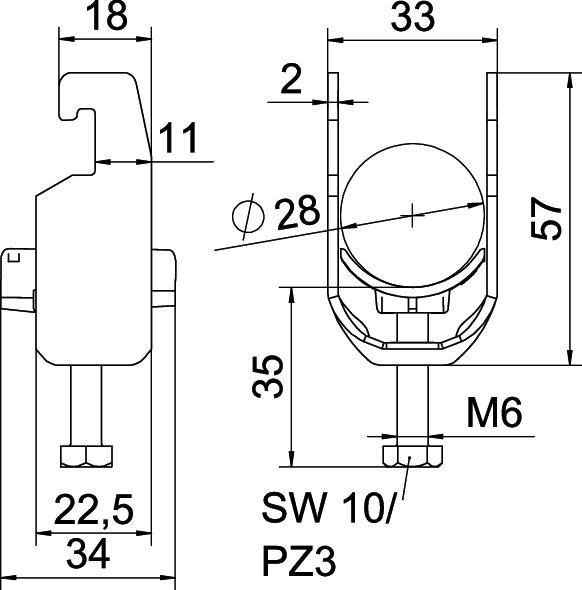 Prekės aprašymasApkaba, U formos kojelė, su plastikine prispaudimo plokštele iš polipropileno. Vertikaliam ir horizontaliam 1 vieno kabelio montavimui ant C profilio bėgelio. Kai įpjovos plotis 16 - 17 mm. Su vienaeigiu varžtu prie pirspaudimo plokštelės, universali šešiakampė varžto galvutė SW10, su grioveliu ir kryžminiu grioveliu. Tinka montuoti viduje ir lauke. Rekomenduojame naudoti kontraplokštelę.