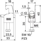 Prekės aprašymasApkaba, U formos kojelė, su plastikine prispaudimo plokštele iš polipropileno. Vertikaliam ir horizontaliam 1 vieno kabelio montavimui ant C profilio bėgelio. Kai įpjovos plotis 16 - 17 mm. Su vienaeigiu varžtu prie pirspaudimo plokštelės, universali šešiakampė varžto galvutė SW10, su grioveliu ir kryžminiu grioveliu. Tinka montuoti viduje ir lauke. Rekomenduojame naudoti kontraplokštelę.