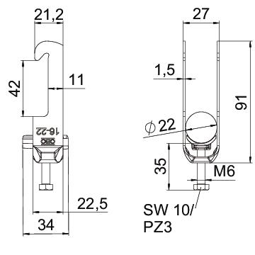 Prekės aprašymasApkaba, W formos kojelė, su plastikine prispaudimo plokštele iš polipropileno. Vertikaliam ir horizontaliam 1 atskiro kabelio prie plokščiojo plieno montavimui prie plieno kampuočių iki < 40 mm. Su vienaeigiu varžtu prie pirspaudimo plokštelės, universali šešiakampė varžto galvutė SW10, su grioveliu ir kryžminiu grioveliu. Tinka montuoti viduje ir lauke. Rekomenduojame naudoti kontraplokštelę.