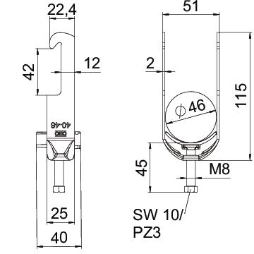 Prekės aprašymasApkaba, W formos kojelė, su plastikine prispaudimo plokštele iš polipropileno. Vertikaliam ir horizontaliam 1 atskiro kabelio prie plokščiojo plieno montavimui prie plieno kampuočių iki < 40 mm. Su vienaeigiu varžtu prie pirspaudimo plokštelės, universali šešiakampė varžto galvutė SW10, su grioveliu ir kryžminiu grioveliu. Tinka montuoti viduje ir lauke. Rekomenduojame naudoti kontraplokštelę.